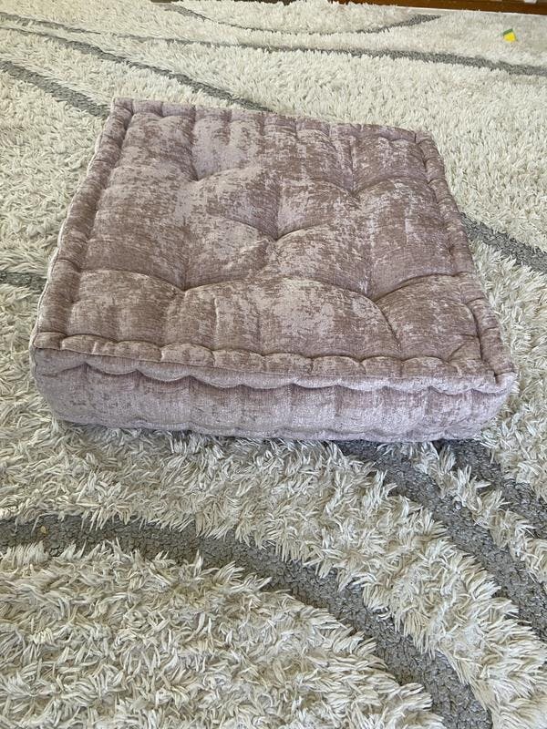 This is the perfect floor pillow! The size is great and it’s very comfy. The color is so pretty, I was worried it would be to pink but it’s truly a blush color. The fabric is soft with out being fuzzy. We like to sit on the floor and play games or do puzzles and this pillow is awesome. I will definitely be buying more. I think these would look so cute stacked in different colors which is what I may end up doing.