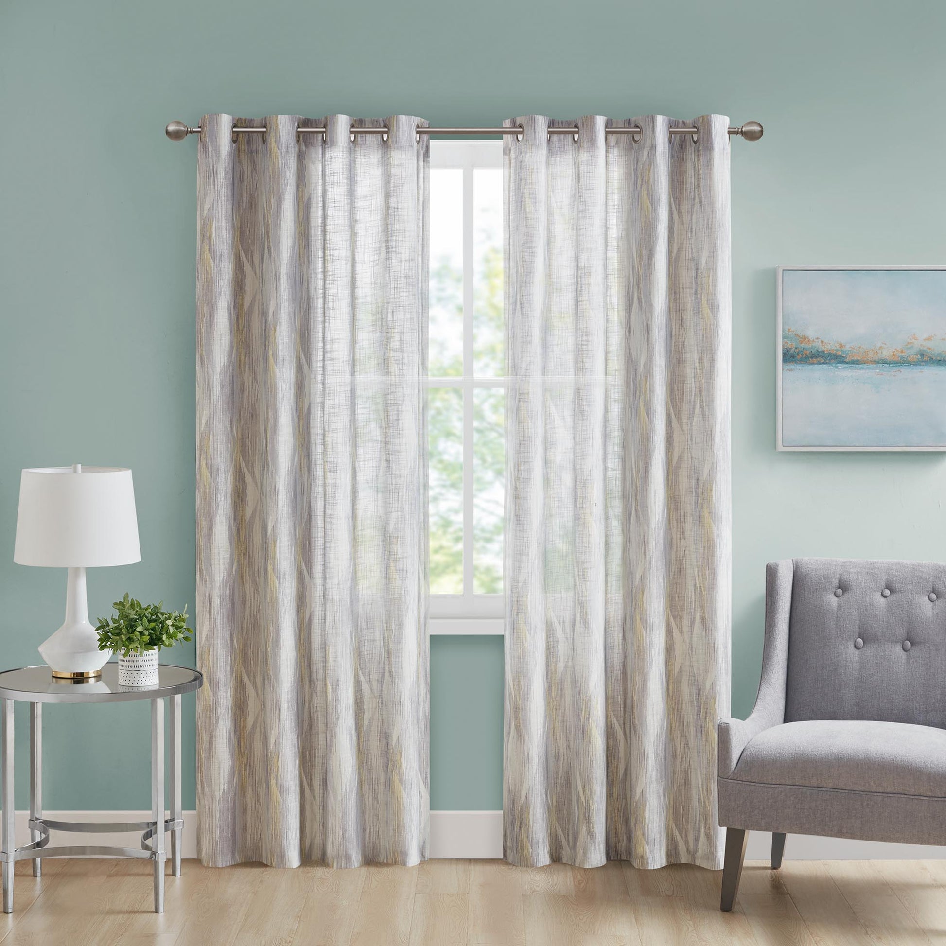Elegant and contemporary, this 100% polyester slub printed window panel features a soft texture and modern pattern that gently filters light while maintaining privacy — perfect for brightening up any room.