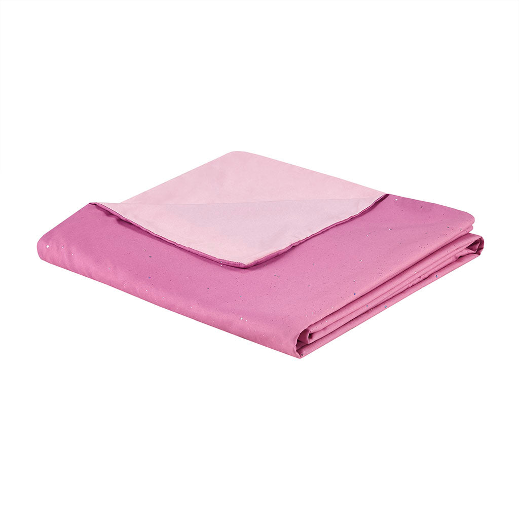The Mi Zone Glimmer Metallic Glitter Printed Reversible Duvet Cover Set brings a lively and colorful update to your bedroom. This ultra-soft reversible duvet cover features an ombre pattern of pink, peach, and dark pink that flips to a solid pink on the reverse.