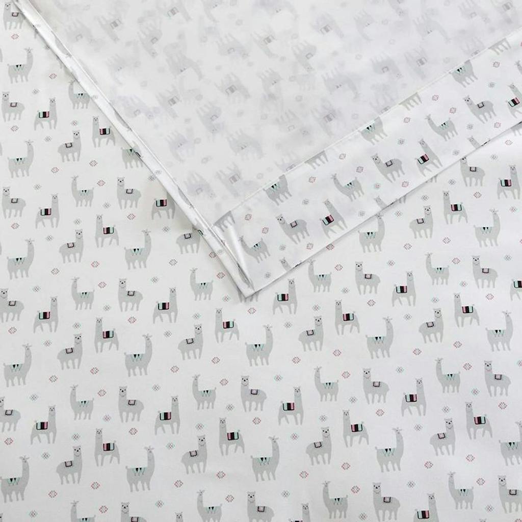These sheets are super cute. They come in size twin xl which is perfect for dorm rooms. The sheets have a pattern of llama and alpaca and a grey, coral-y pink and minty green color scheme. The set includes one fitted sheet, one top sheet and two standard size pillow cases. They’re super soft and really affordable.
