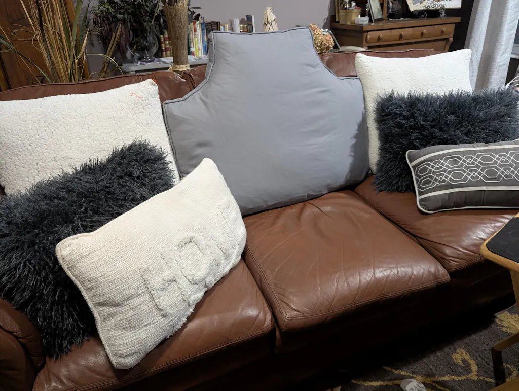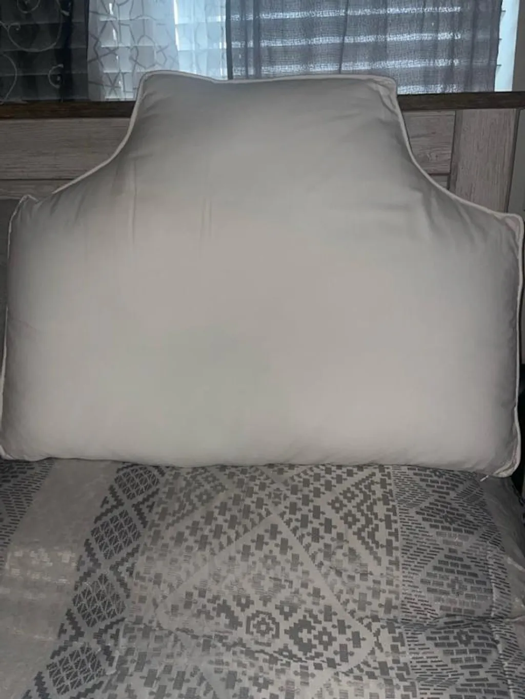 I love the grey headboard pillow I purchased. I use it on my couch for a back support as well as the height supports my head. It is just like sitting in bed reading.