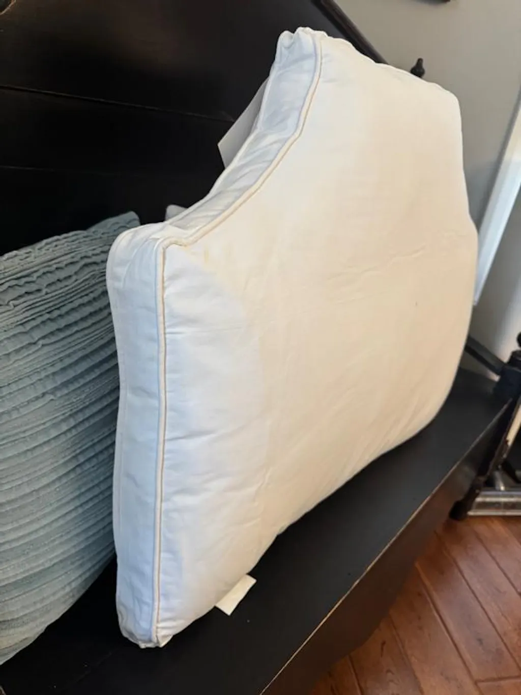 This is such a pretty oversized headboard pillow. I love the shape that this pillow brings to my bed and pillows. It’s a great size and good quality. I think it will be great to support my back while reading in bed.