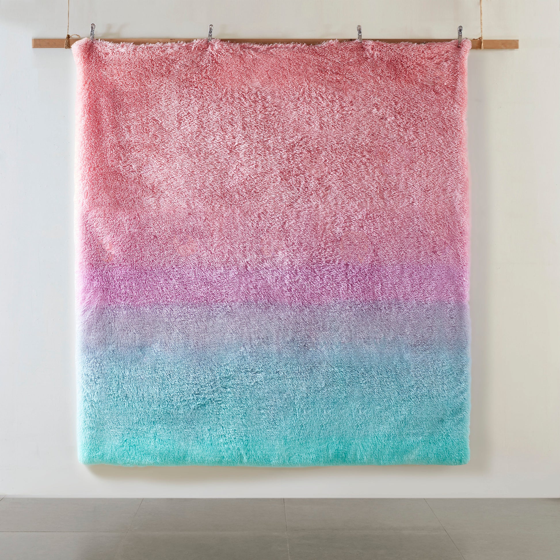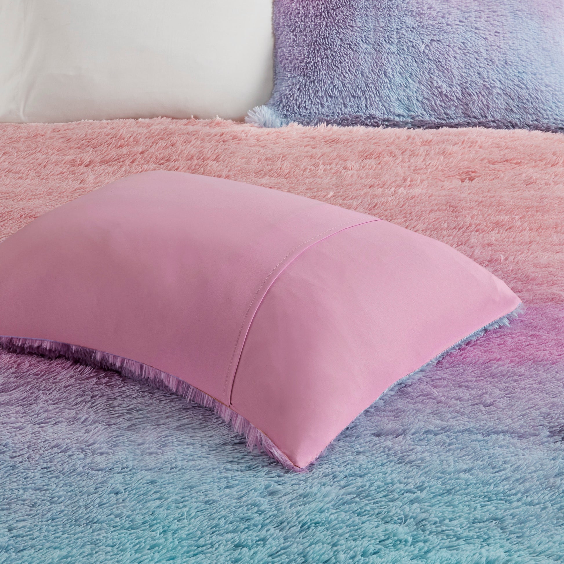 Ultra cozy and soft rainbow ombre, shaggy faux fur comforter set with polyester filling