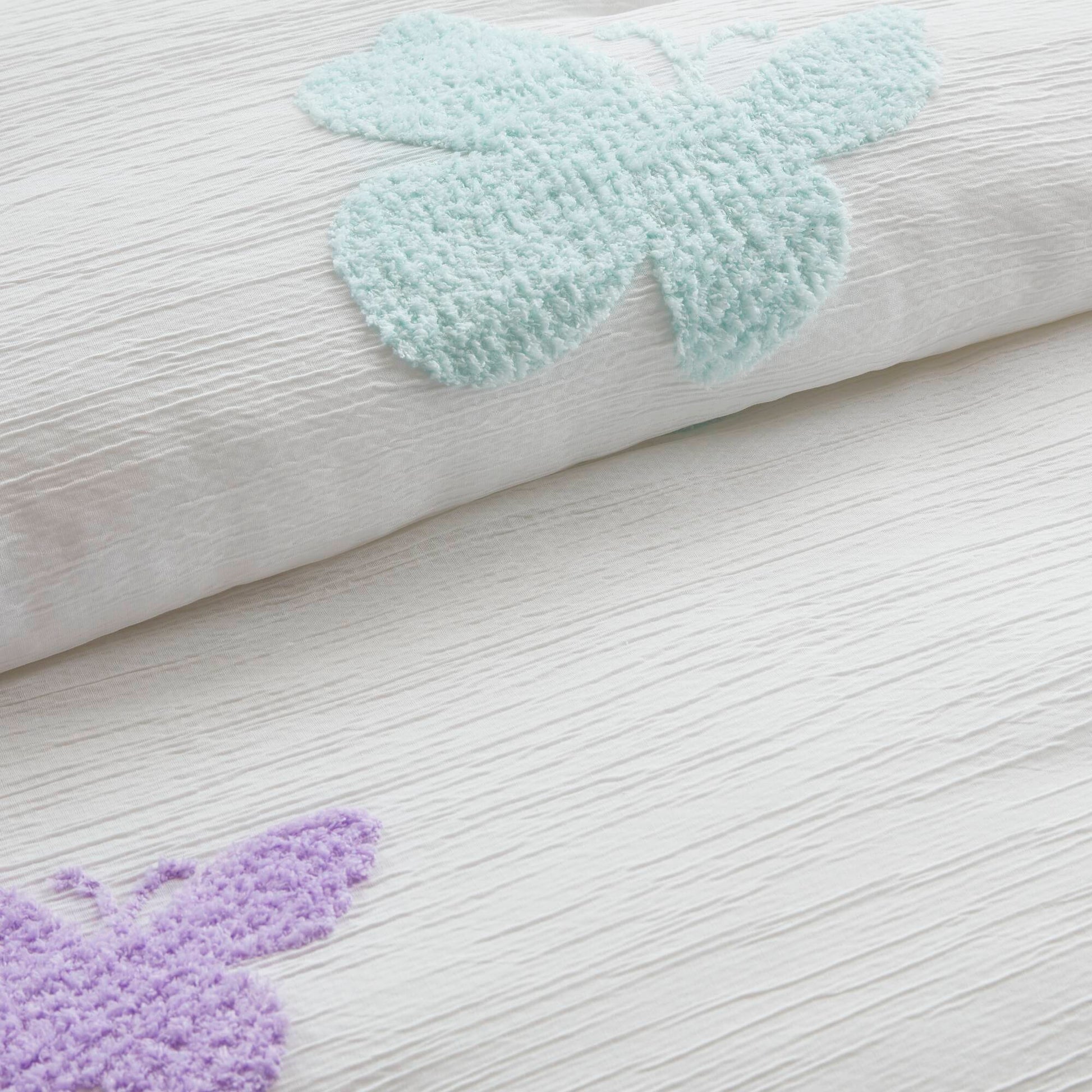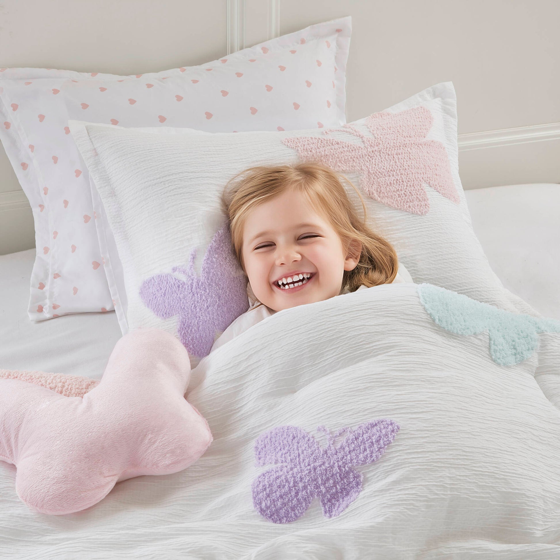 - Tufted Butterfly Vibes – Soft pastel butterflies are delicately tufted for added texture, bringing playful charm and a dreamy touch to your bedding.