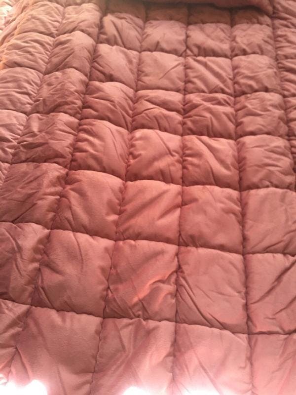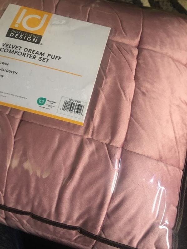 The Velvet Dream Puff comforter set is so NICE! The top side is plush and velvety. Then the underside is soft cotton. It is fluffy like a down comforter but has a lot of weight to it. It is so soft and perfect for the cooler months.